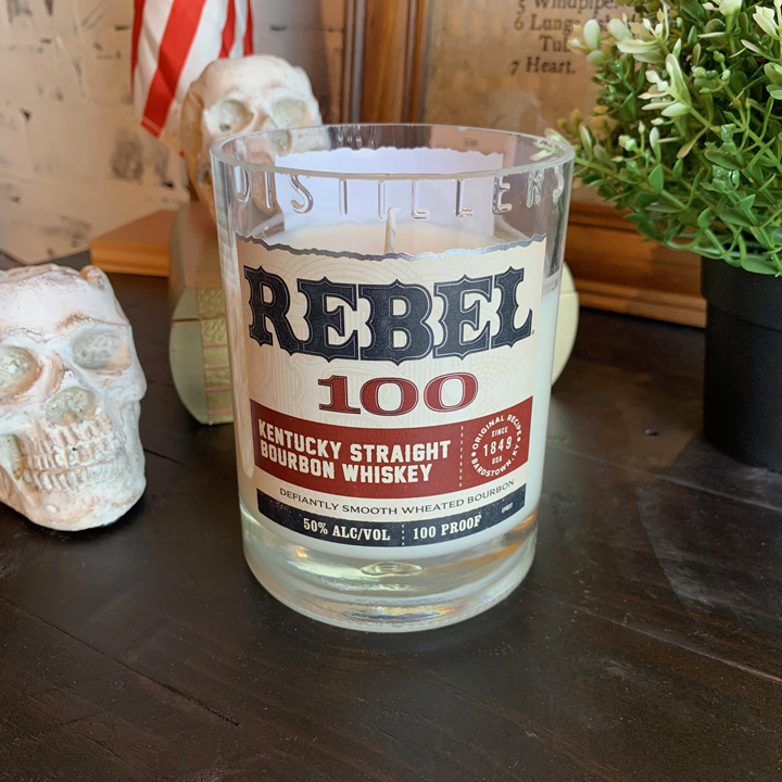 This product has been made from a recycled Rebel 100 Proof bottle. Rebel 100 Proof is a registered trademark and is not involved in or affiliated with the production or distribution of this product.