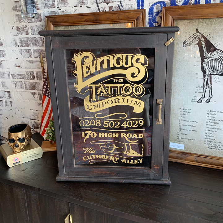 Vintage Wood Shop Cabinet- Leviticus Tattoos
